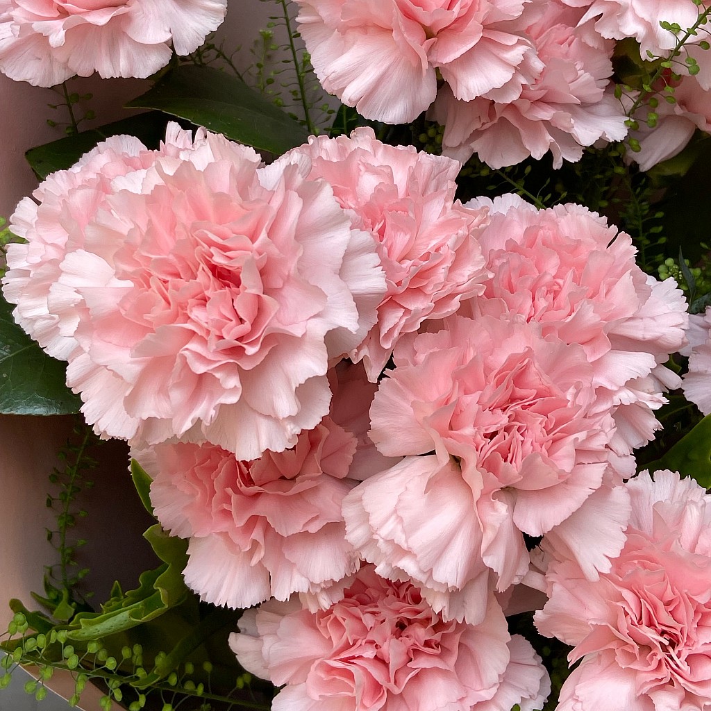 《花材》 康乃馨、玫瑰 /尺寸 : H60 x W45 cm。 /花材偶有季節性,遇缺貨或品質不佳等情形,我們將為您做花材上的調整及設計。 /因花材為天然素材,故無法規格化,作品無法與目錄照片完全相同,敬請見諒。 /卡片內容字數五十字內,請於下單後在備註欄位填寫